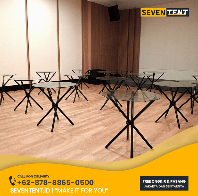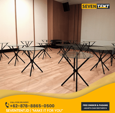 Butuh sewa meja dealing di Depok untuk pameran atau booth mall? Seventent.id menyediakan meja negosiasi kaca & kayu berkualitas tinggi. Unit mewah, kokoh, & siap antar ke Depok, Kota Depok. Cek harga promo terbaru 2026 & buat kesepakatan bisnis Anda lebih profesional di sini!