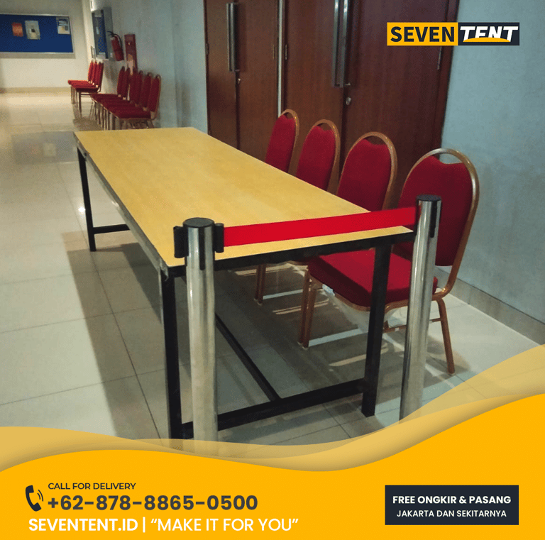 Butuh Estimasi Harga atau Konsultasi Layout? Jangan ragu untuk menghubungi tim admin Seventent.id. Kami siap membantu menghitung kebutuhan meja berdasarkan luas ruangan Anda.