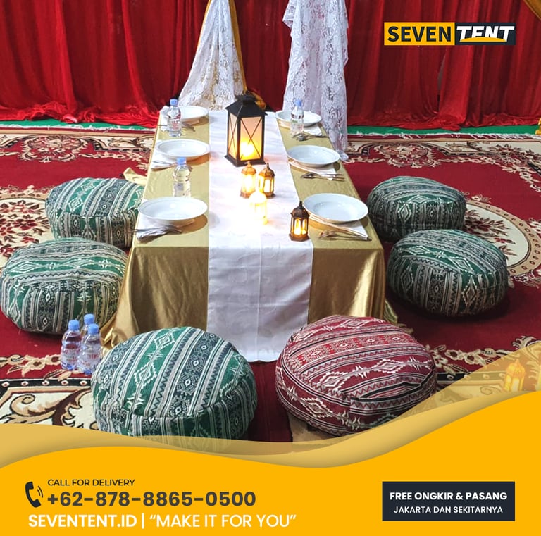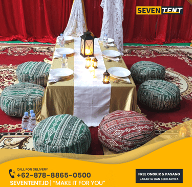 Butuh sewa meja lesehan Bekasi yang kokoh & estetik? Seventent.id menyediakan meja pendek kayu berkualitas untuk pengajian, syukuran, & piknik event. Unit bersih, stabil, & siap antar ke Cikarang, Tambun, hingga Summarecon. Cek harga promo 2026 & ciptakan suasana hangat di acara Anda di sini!