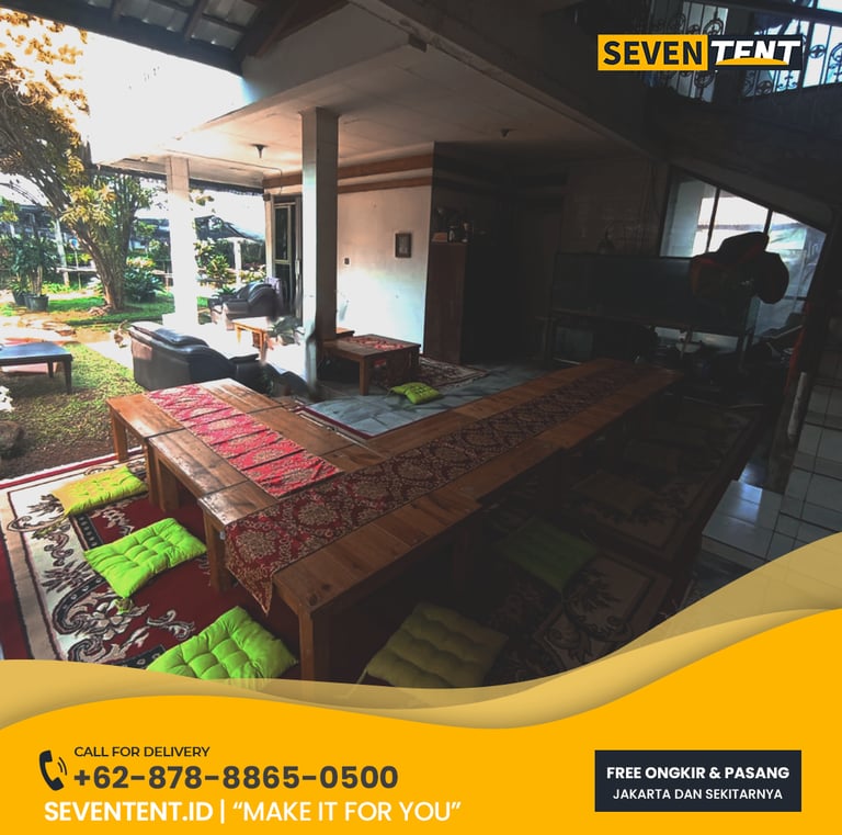 Cari sewa meja lesehan Karawang? Cek panduan ukuran 120x60cm, karakteristik material anti-noda, & durability beban katering 2026. Solusi acara bukber, gathering, & event santai di KIIC, Suryacipta, & Galuh Mas. Unit bersih, rapi, & siap antar dari Seventent.id. Baca selengkapnya di sini!