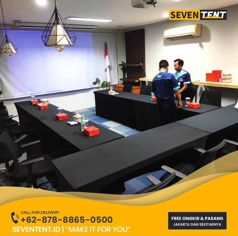 Butuh sewa meja meeting Tangerang Selatan yang kokoh & profesional? Seventent.id menyediakan rental meja IBM & meja rapat lengkap taplak untuk BSD, Bintaro & Serpong. Unit bersih, stabil, & siap antar tepat waktu. Cek promo harga 2026 & buat ruang rapat Anda makin berkelas di sini!