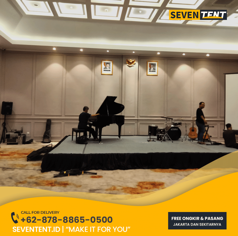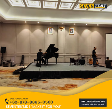 Butuh sewa panggung kayu Bekasi yang kokoh & rapi? Seventent.id menyediakan rental panggung modular multiplek untuk sekolah, wedding, & event kantor. Unit stabil, karpet bersih, & siap antar ke Cikarang, Tambun, hingga Summarecon. Cek paket harga promo 2026 & amankan stage Anda di sini!