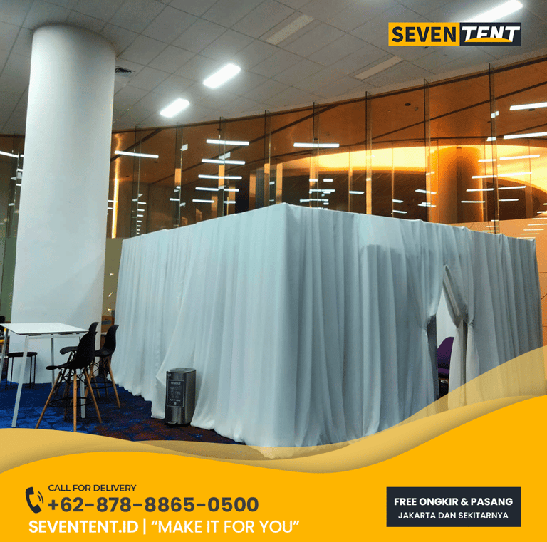 Butuh penyekat ruangan yang elegan? Sewa Partisi Tirai Jakarta di Seventent.id menyediakan tirai kain velvet & blackout dengan rangka self-standing. Cocok untuk sekat ruangan VIP, backstage, & penutup dinding. Bersih, rapi, & pasang cepat ke seluruh Jakarta, Jakarta Utara, Jakarta Timur, Jakarta Selatan, Jakarta Barat, Jakarta Pusat. Cek harga sewa terbaru 2026 di sini!