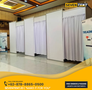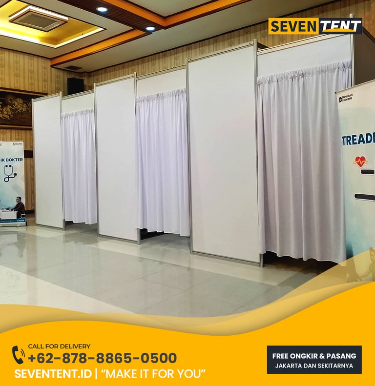 Butuh sewa ruang ganti partisi Jabodetabek yang privat & rapi? Seventent.id menyediakan rental fitting room R8 & bilik tirai kualitas premium. Unit bersih, tanpa paku dinding, & siap antar ke Jakarta hingga Cikarang. Cek promo harga 2026 & hadirkan kenyamanan backstage profesional di sini!