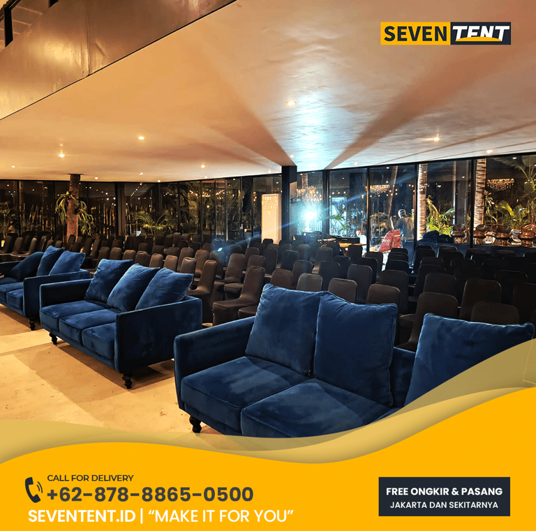 Butuh sewa sofa VIP Depok yang mewah & bersih? Seventent.id menyediakan sofa single, double, & triple kualitas premium untuk seminar, wedding, & event VVIP. Unit rapi, harum, & siap antar ke Depok, Kota Depok. Cek harga promo 2026 & buat tamu penting Anda merasa spesial di sini!