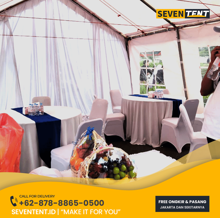 Butuh sewa tenda 4x6 Bekasi yang kokoh & bersih? Seventent.id menyediakan tenda untuk hajatan, bazar, & syukuran rumah. Unit terawat, 100% waterproof, & siap antar ke Cikarang, Tambun, hingga Summarecon. Cek harga promo 2026 & amankan tenda acara Anda di sini!
