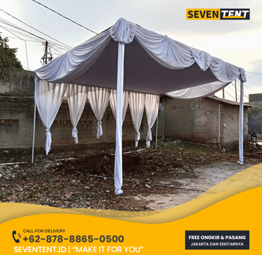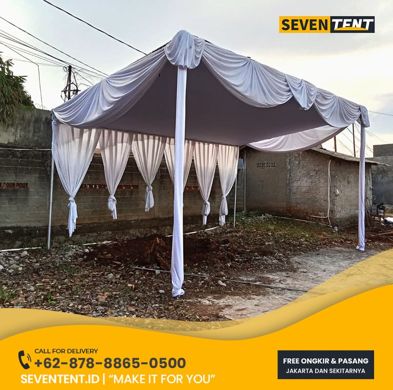 Sewa tenda Depok di Seventent.id menyediakan berbagai tipe tenda mulai dari Tenda Sarnafil, Tenda Roder untuk kapasitas besar, hingga Tenda Dekorasi (Serut) untuk pernikahan. Kami melayani seluruh wilayah Depok, termasuk Beji, Margonda, Sawangan, hingga Cinere.