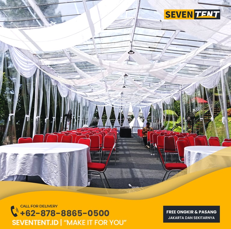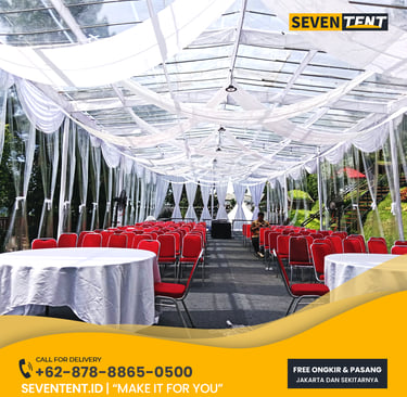 Butuh sewa tenda Jabodetabek yang kokoh & mewah? Seventent.id menyediakan rental tenda roder, sarnafil, & tenda dekorasi kualitas premium. Unit bersih, 100% waterproof, & siap antar ke Jakarta, Bogor, Depok, Tangerang & Bekasi. Cek promo harga 2026 & amankan kenyamanan acara Anda di sini!