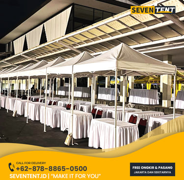 Butuh sewa tenda jualan Jabodetabek yang praktis & murah? Seventent.id menyediakan rental tenda bazar & gazebo lipat kualitas premium. Unit bersih, 100% waterproof, & siap antar ke Jakarta hingga Bogor. Cek promo harga 2026 & tingkatkan omzet jualan Anda dengan booth profesional di sini!