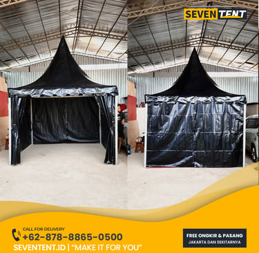Sewa tenda sarnafil 3x3 di Karawang menawarkan unit tenda kerucut dengan luas area 9 meter persegi. Karakteristik utamanya meliputi rangka aluminium alloy antikarat, atap PVC white blockout 100% waterproof, dan dinding yang dapat dibuka-tutup secara fleksibel. Dari sisi durability, tenda ini stabil menghadapi angin kencang di area terbuka. Seventent.id melayani pengiriman ke Karawang Barat, Timur, Klari, hingga seluruh kawasan industri utama.