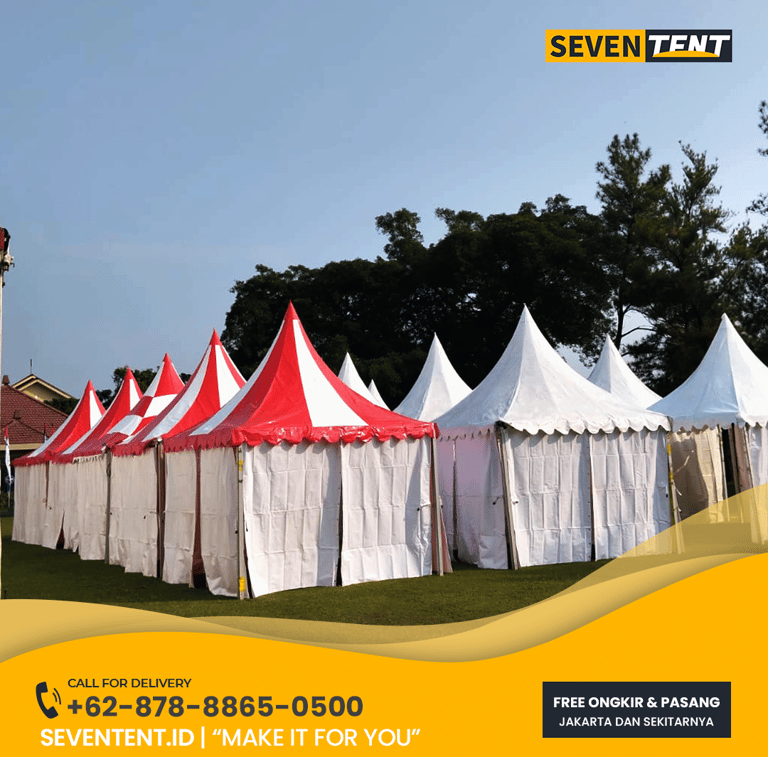 Cari sewa tenda sarnafil Depok yang rapi & berkualitas? Seventent.id menyediakan tenda kerucut 3x3 & 5x5 untuk event, wedding, & bazar. Unit bersih, rangka aluminium kokoh, & 100% anti-bocor. Siap antar ke Depok, Kota Depok. Cek harga promo terbaru 2026 & booking sekarang di sini!