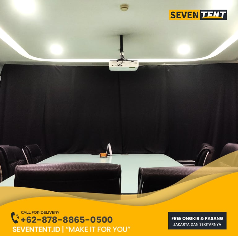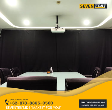 Sewa tirai background Depok di Seventent.id menyediakan layanan dekorasi latar belakang menggunakan kain berkualitas tinggi seperti Lototto (Blackout), Habutai (Satin), dan Velvet. Sistem pemasangan menggunakan rangka pipa teleskopik mandiri (self-standing) yang memiliki karakteristik stabil dan tidak merusak struktur bangunan. Kami melayani wilayah Margonda, Beji, Sawangan, hingga Cimanggis.