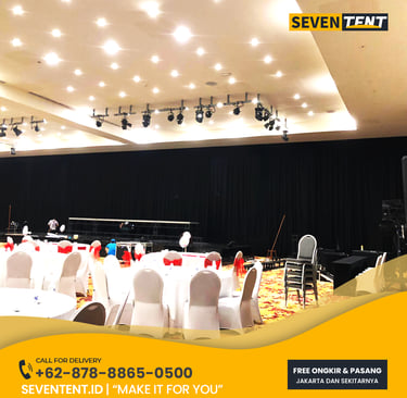 Butuh sewa tirai background Tangerang Selatan yang rapi & mewah? Seventent.id menyediakan rental sekat blackout & backdrop kain premium untuk event di BSD, Bintaro & Serpong. Kain bersih, tebal, & siap antar tepat waktu. Cek promo harga 2026 & buat panggung Anda makin eksklusif di sini!