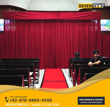 Sewa tirai peresmian Jabodetabek di Seventent.id menyediakan sistem tirai jatuh (curtain drop) profesional dengan dua mekanisme utama: Sistem Selenoid Otomatis (Remote) dan Sistem Tarik Manual. Menggunakan material kain premium seperti Velvet (Beludru) atau Satin yang berat dan mewah. Kami melayani seluruh wilayah Jakarta, Bogor, Depok, Tangerang, dan Bekasi.