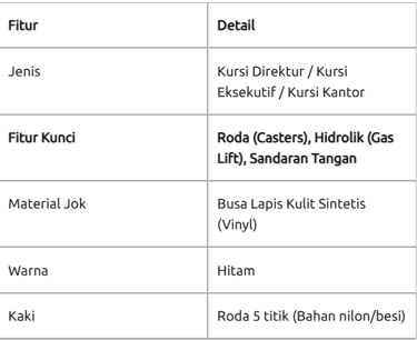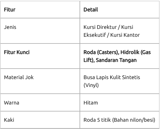 Mekanisme Reclining & Tilting: Kursi direktur yang baik memiliki fitur kemiringan yang dapat dikunci. Ukuran mekanisme ini biasanya lebih kokoh untuk menahan beban tubuh saat pimpinan bersandar penuh.