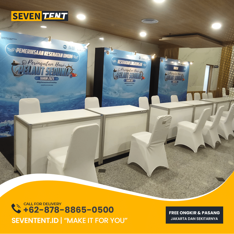 Menyiapkan event besar tentu melelahkan jika Anda harus mengurus logistik sendirian. Seventent.id hadir sebagai partner terpercaya untuk kebutuhan furnitur acara Anda: