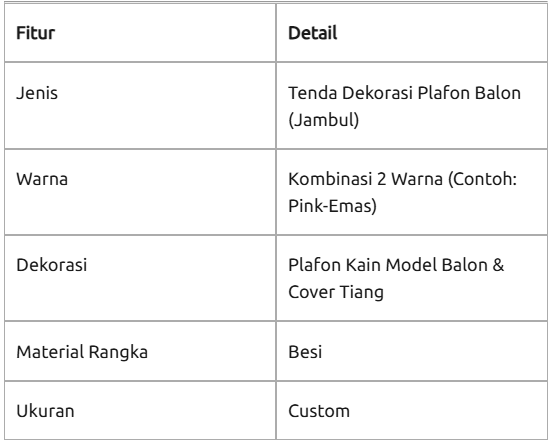 Plafon Balon (Scalloped): Kain dibentuk bergelombang bervolume. Model ini membuat atap tenda terlihat lebih rendah secara visual, namun memberikan kesan klasik yang sangat kuat.