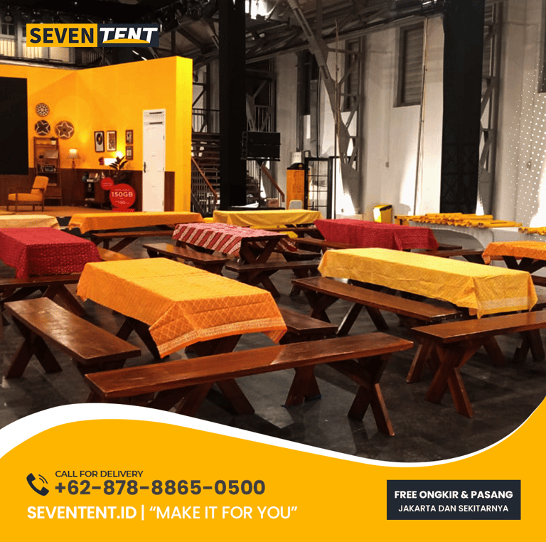 Menyiapkan event besar tentu melelahkan jika Anda harus mengurus logistik sendirian. Seventent.id hadir sebagai partner terpercaya untuk kebutuhan furnitur acara Anda: