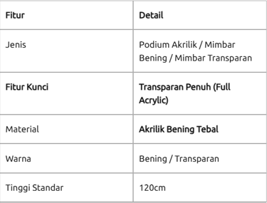 Apakah podium akrilik cukup stabil dan tidak mudah goyang?