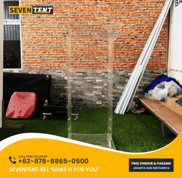 Di Seventent.id, kami menjamin setiap unit podium yang dikirim dalam kondisi kristal jernih. Kami menggunakan teknik pembersihan khusus dan cairan anti-statis untuk menghilangkan sidik jari serta debu. Jika terdapat goresan halus, tim kami melakukan proses polishing rutin untuk mengembalikan kejernihan materialnya.