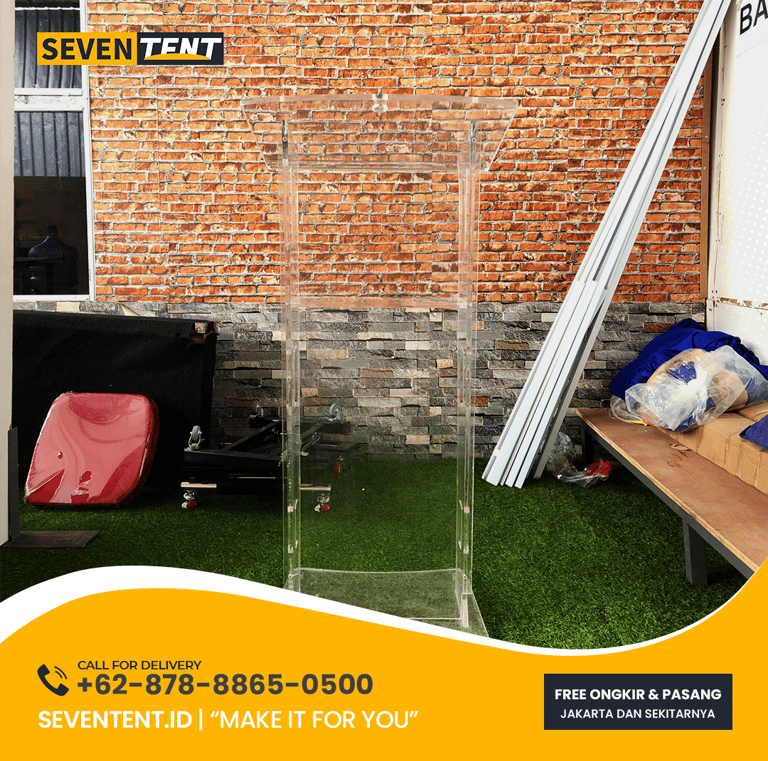 Cek spesifikasi podium akrilik standar, tinggi ideal, dan ketebalan material di Seventent.id. Temukan mimbar transparan minimalis untuk kesan modern dan elegan di acara formal atau pernikahan Anda. Solusi sewa podium akrilik berkualitas dengan tampilan jernih dan kokoh. Lihat detailnya di sini!